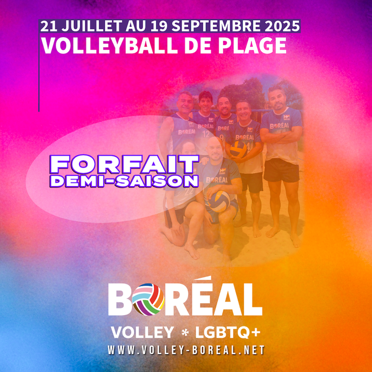 FRANÇAIS a montreal volleyball clubOPEN TO EVERYONEVOLLEY BORÉAL is an inclusive Montreal volleyball club founded with the aim of promoting the practice and development of the sport among members and allies of the LGBTQ+ community. Learn more INDOORVOLLEYBALL Learn More TRAINING AND GAME CLINICSWhen?Sundays from 5 p.m. to 7 p.m. starting August 17, 2025Where?ASCCS (2093 Rue de la Visitation, Montreal) DETAILS BEACH VOLLEYBALLLEAGUE DETAILS Subscribe to our newsletter Sign up with your email address to receive news and updates. Adresse e-mail Register Merci !